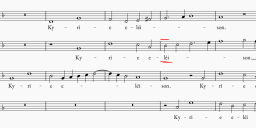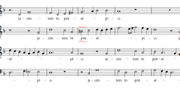 For example, Kyrie II is almost directly copied from the jacentem in praesepio segment of the motet, however the Alto has B-flat on measure 23 of the Kyrie (see 'A' attachment below) instead of B-natural as on measure 32 of the motet ('B' attachment).