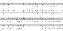 Another example is the Filius Patris segment of the Gloria, based on ut animalia from the motet. The Cantus has F-natural on measure 34 of the Gloria ('C' attachment) instead of F-sharp as on measure 21 of the motet ('D' attachment).