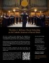 The John A. McInnes Choral Fellowship was established to encourage twelve outstanding Catholic singers to exercise their musical gifts for the glory of God in the context of the sacred liturgy.