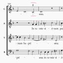 Another example is the Filius Patris segment of the Gloria, based on ut animalia from the motet. The Cantus has F-natural on measure 34 of the Gloria ('C' attachment) instead of F-sharp as on measure 21 of the motet ('D' attachment).