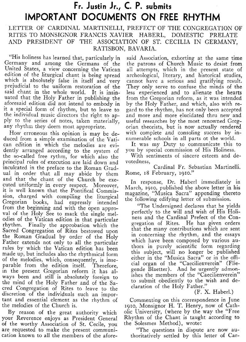 • Adam, love your certitude. I won't be around to hear it happen, but the likes of you, Adam B and Jeff MO darn near make me a cock-eyed optimist! And yes, between JMO's jam-packed presentation on Pothier last summer and the letter excerpt in CAECILIA 33, arguments seem to self-sustain themselves over, uh, centuries. Must be an eschatological thing.